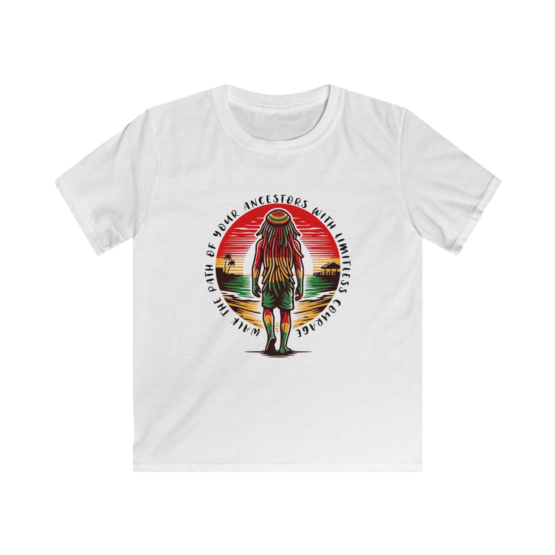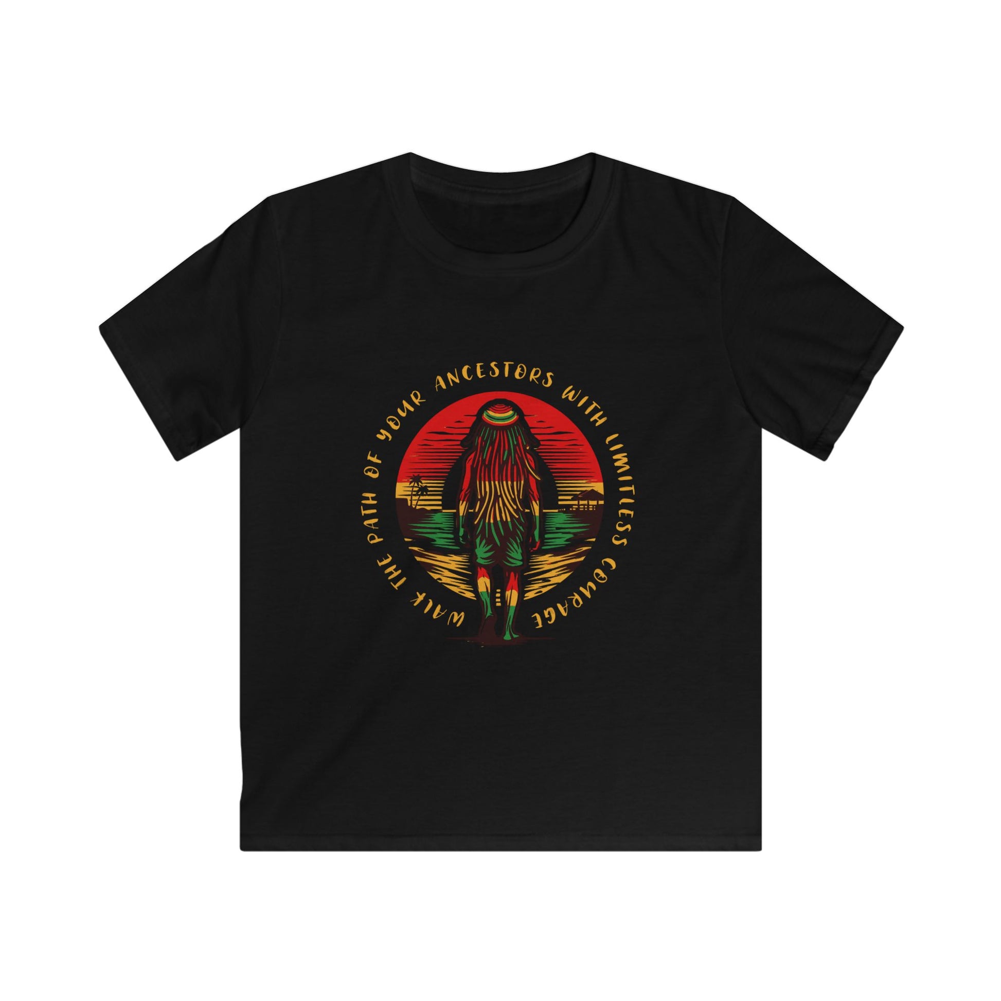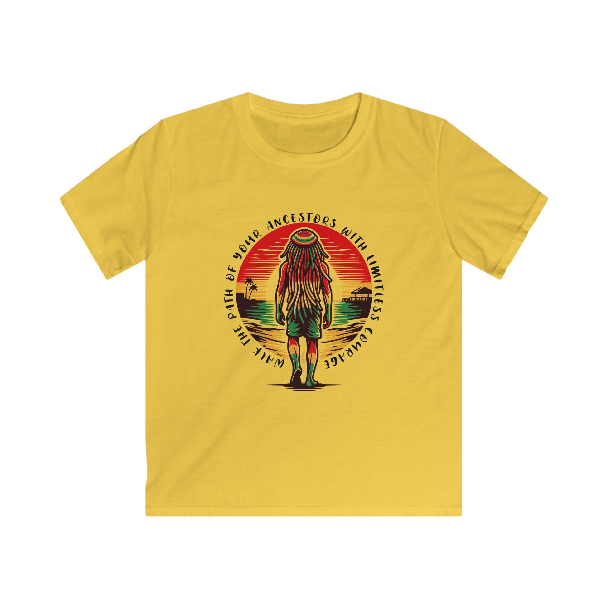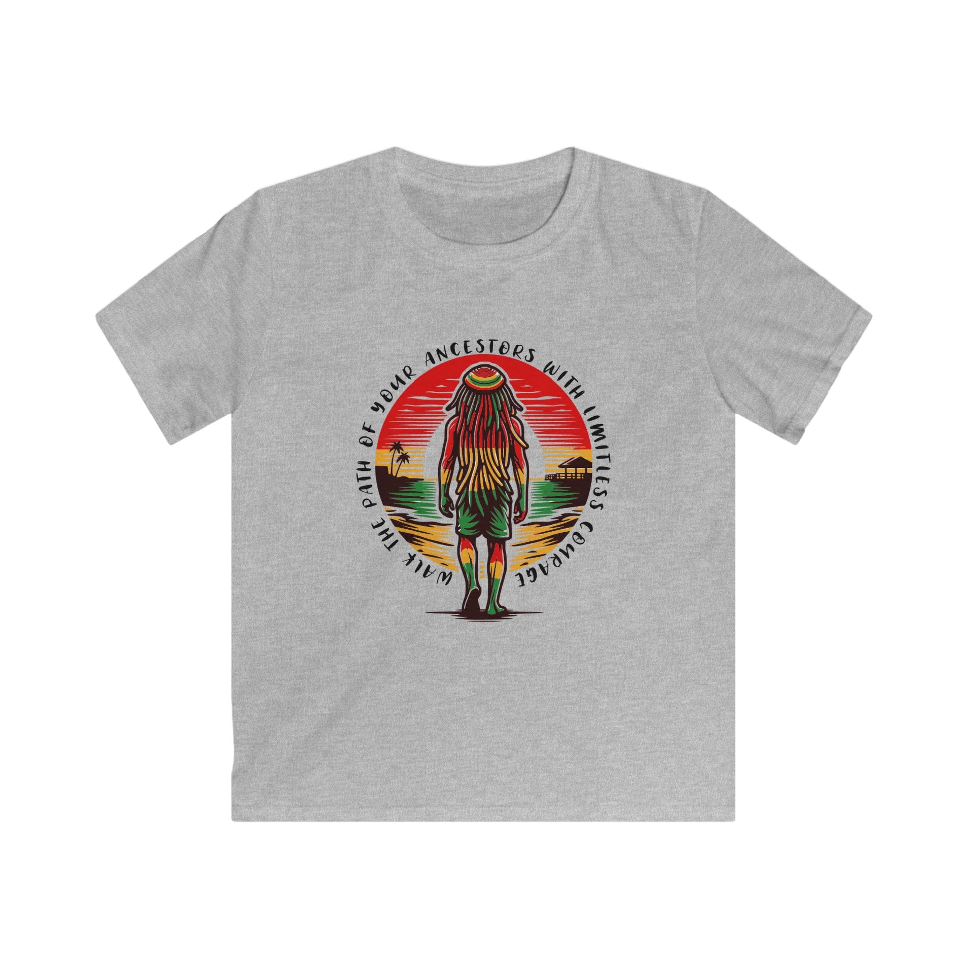 Walk the Path Youth Tee is an expression of ancestry/ paying homage to your ancestors. Crafted from soft, high-quality materials, this tee provides comfort and style for your kids. Ideal for kids who love to express themselves, this tee can be a great gift for birthdays, cultural celebrations, or family gatherings. It's perfect for summer days at the park, family events, or simply lounging around at home. Let your child proudly showcase their personality with this vibrant and unique shirt!