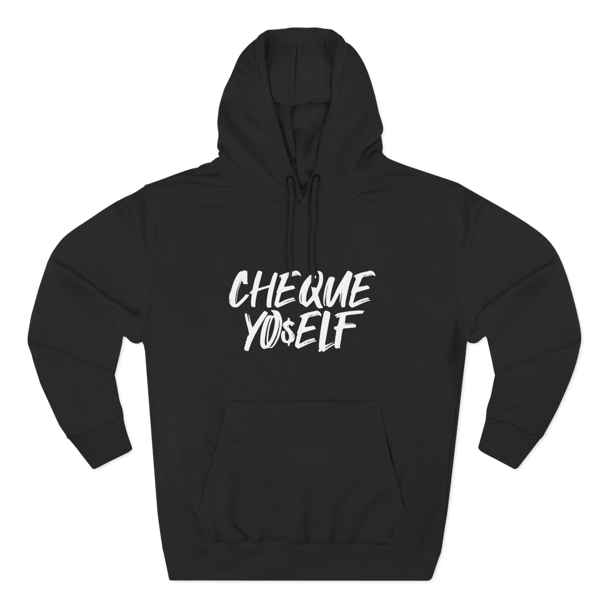 Embrace being your own Boss with this "Cheque Yourself" statement Three-Panel Fleece Unisex Hoodie. Its soft fabric provides a gentle touch against your skin, making it ideal for leisurely outings or snuggling at home. The spacious kangaroo pocket keeps your hands warm and adds a practical element. It’s perfect for creative souls, students, or anyone looking for comfort without sacrificing style. Ideal for any casual occasion, this hoodie is a great choice for holidays or casual gatherings, making you feel comfortable and stylish wherever you go.