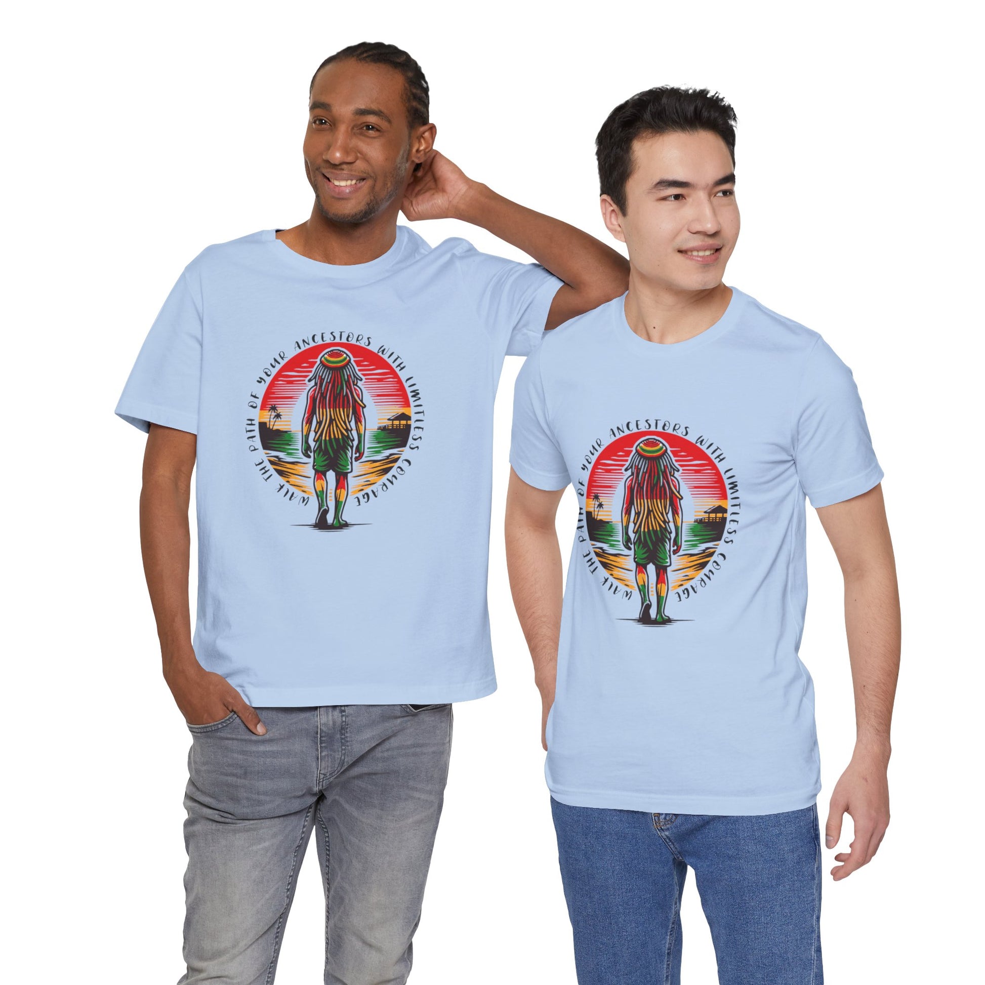 Walk the Path of your ancestors and elevate your casual wardrobe with this stylish Unisex Jersey Short Sleeve Tee. Featuring a vibrant design that celebrates culture and individuality, this tee is perfect for summer outings, music festivals, or just lounging at home. The lightweight fabric is breathable, making it ideal for both active days and relaxed evenings. Whether you're looking to express yourself or find a meaningful gift for a friend, this tee resonates with creativity and confidence. Perfect for holidays, cultural celebrations, or any occasion that calls for self-expression, it's a versatile addition to any closet.